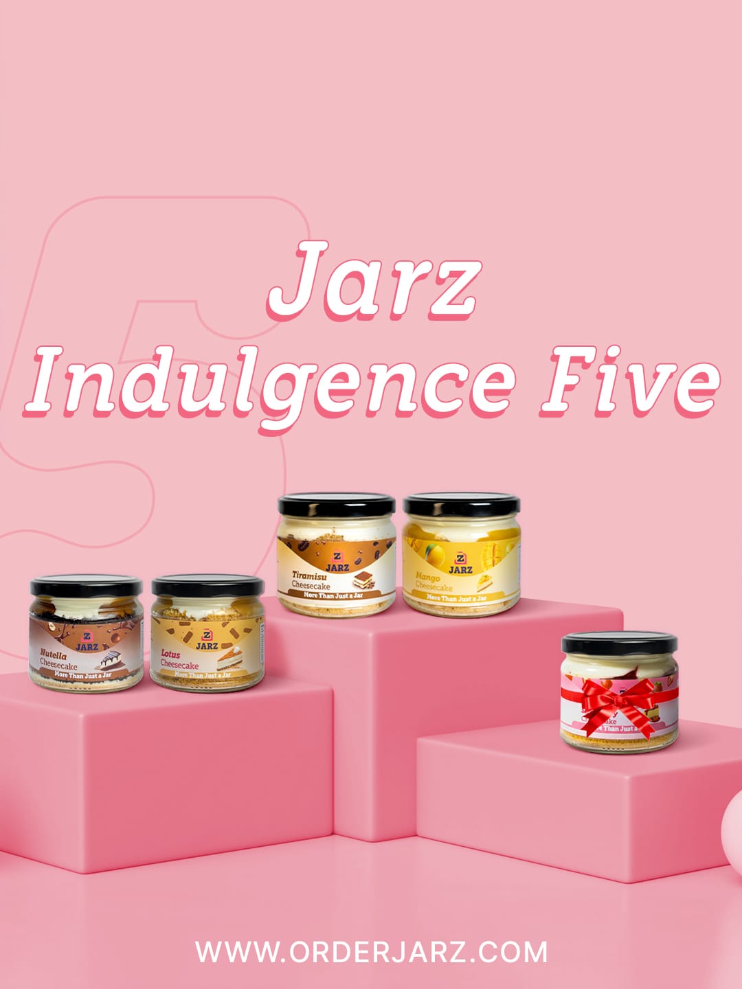 Four large Jarz plus one complimentary jar — a generous bundle crafted for true dessert indulgence.