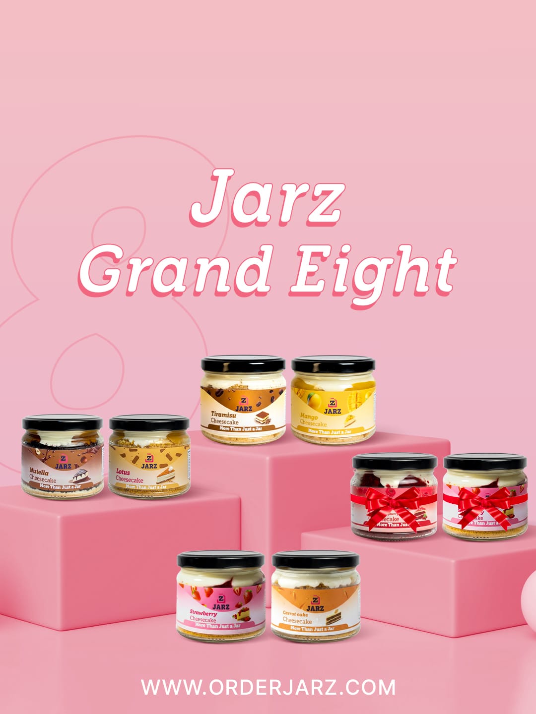 Six large Jarz plus two complimentary jars — a grand dessert selection for gatherings.